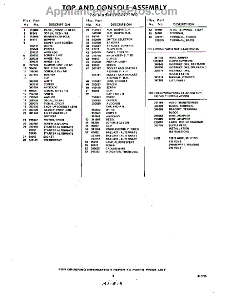 Parts for Whirlpool LVG8771W0: 05 - Lit / Optional Parts