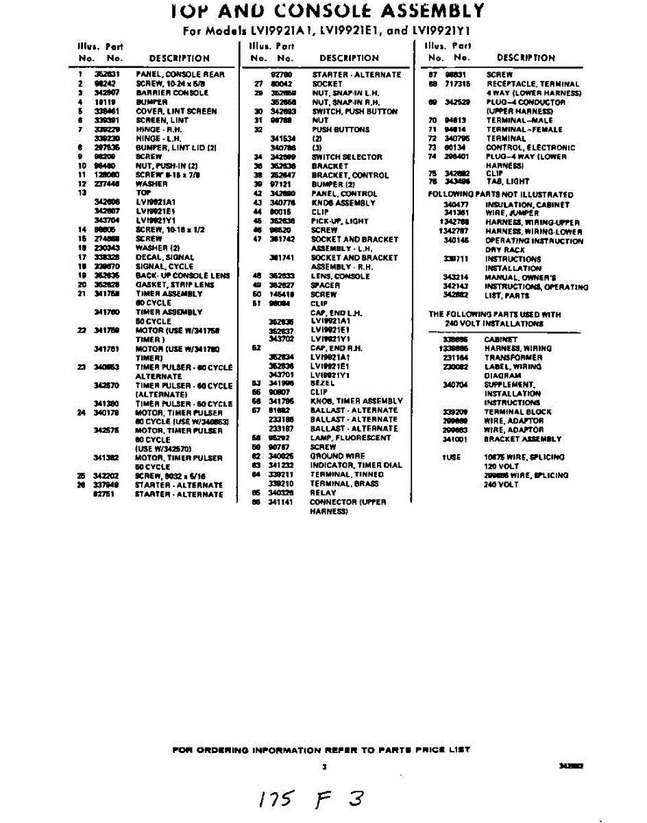Parts for Whirlpool LVI9921E1: 03 - Lit / Optional Parts
