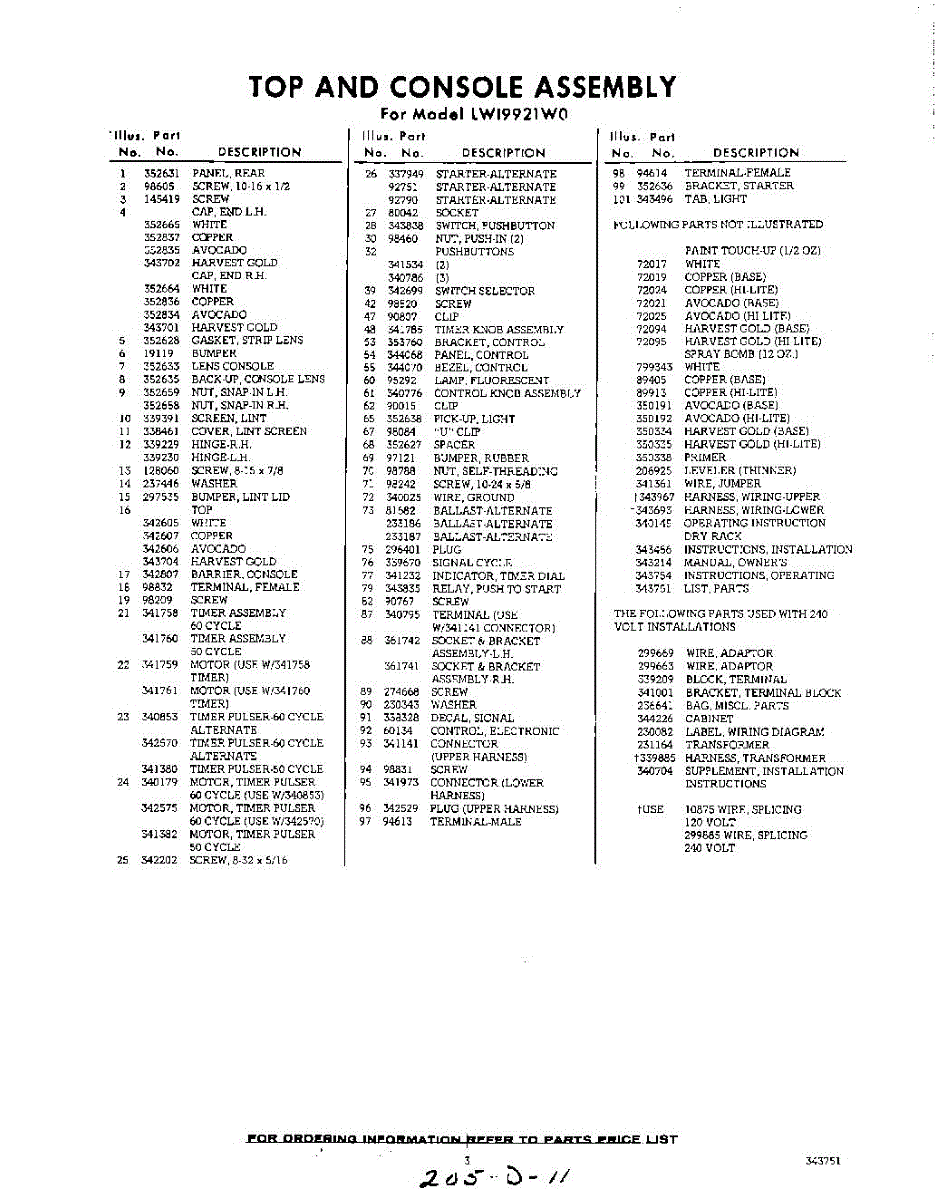 Parts for Whirlpool LWI9921W0: 03 - Lit / Optional Parts