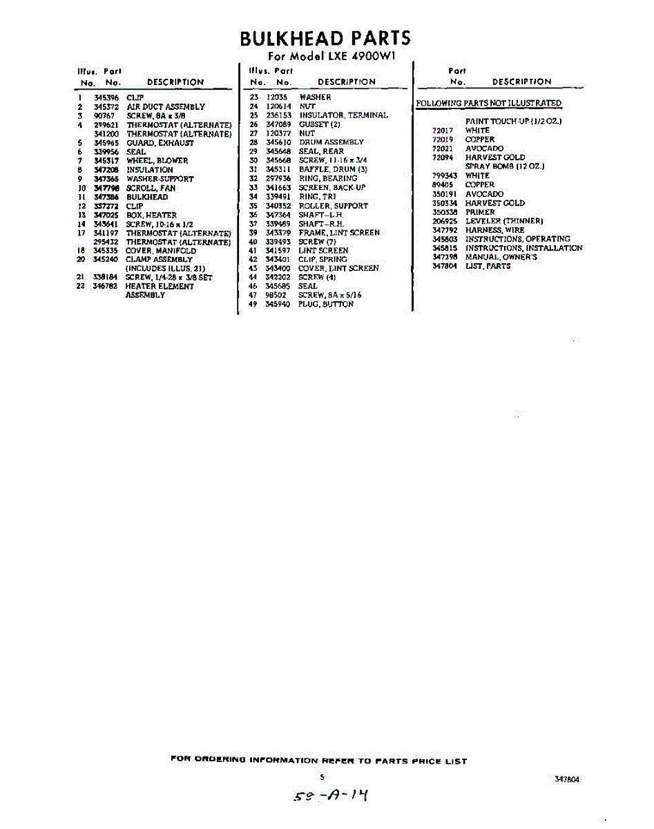 Parts for LXE4900W1