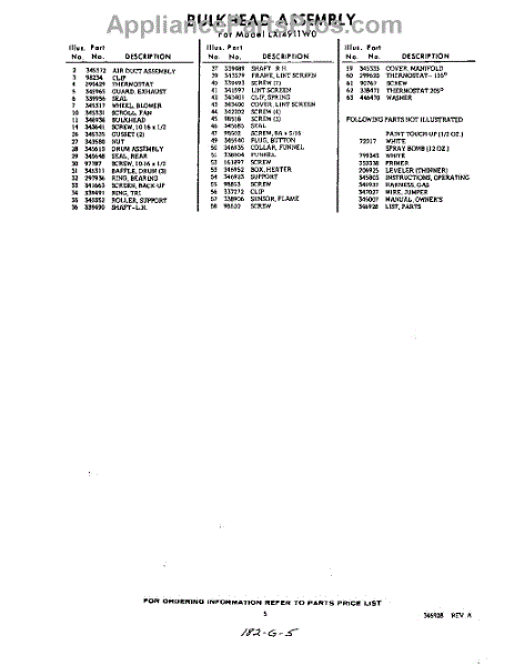 Parts for Whirlpool LXI4911W0: 05 - Lit / Optional Parts