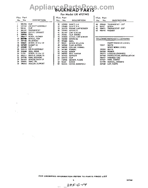 Parts for Whirlpool LXI4921W0: 05 - Lit / Optional Parts