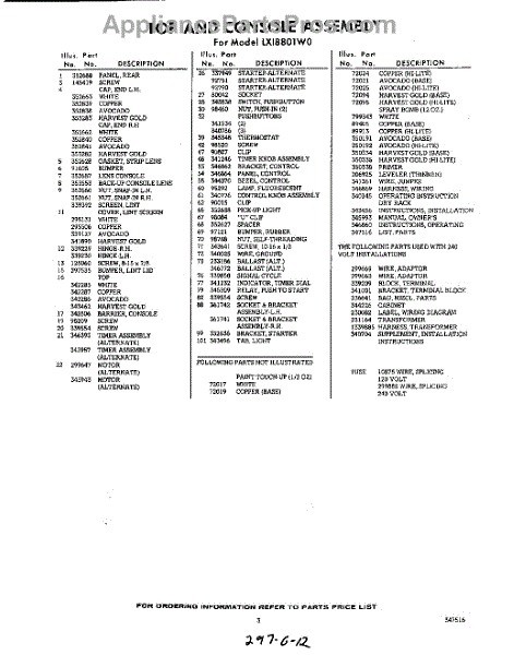 Parts for Whirlpool LXI8801W0: 03 - Lit / Optional Parts