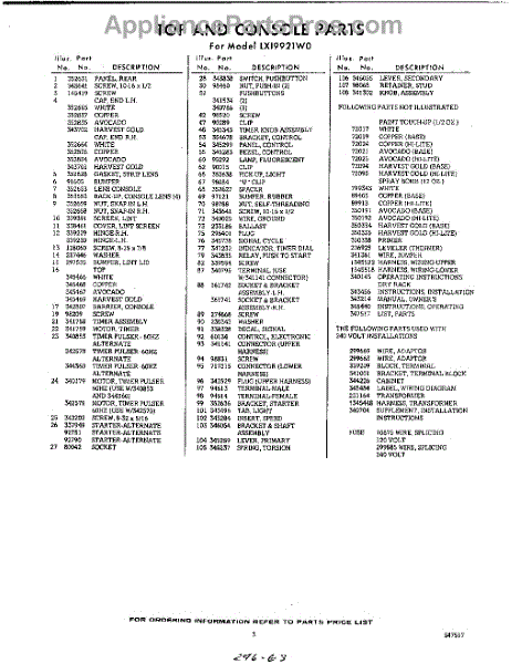 Parts for Whirlpool LXI9921W0: 03 - Lit / Optional Parts