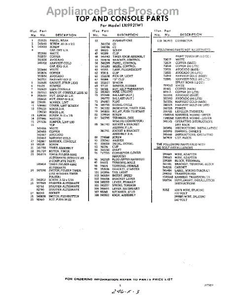 Parts for Whirlpool LXI9921W1: 03 - Lit / Optional Parts