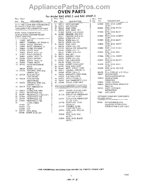 Parts for Whirlpool RAE6960P5: 03 - Lit / Optional Parts