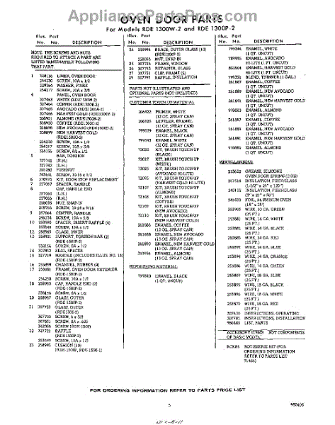 Parts for Whirlpool RDE1300W2: 05 - Lit / Optional Parts