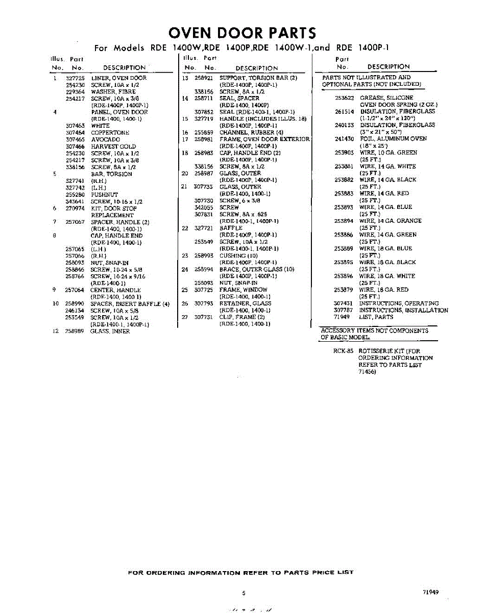 Parts for Whirlpool RDE1400W1: 05 - Lit / Optional Parts