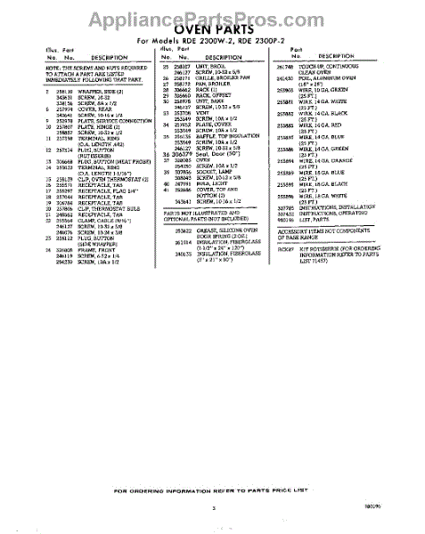 Parts for Whirlpool RDE2300W2: 03 - Lit / Optional Parts