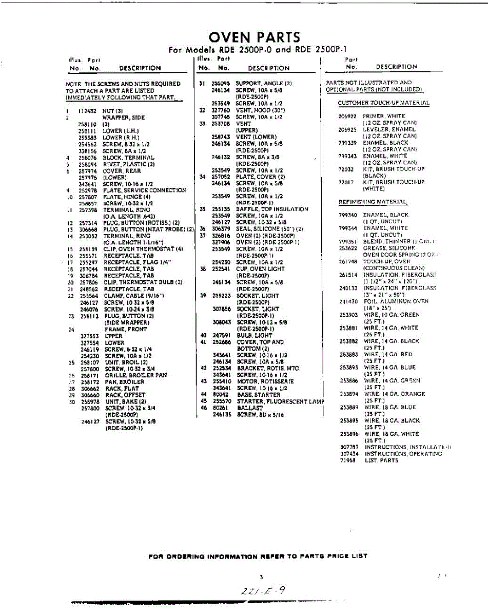 Parts for Whirlpool RDE2500P1: 03 - Lit / Optional Parts