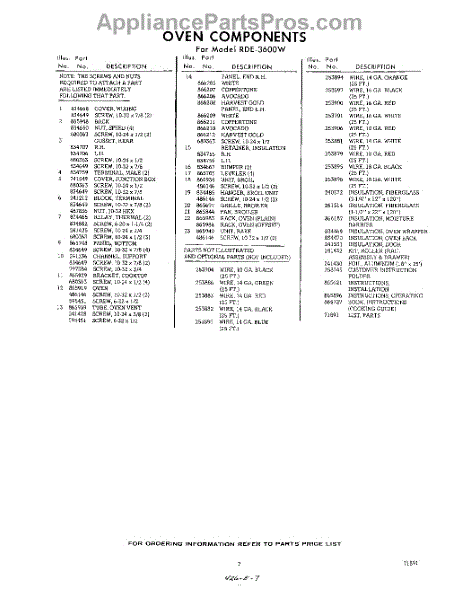 Parts for RDE3600W