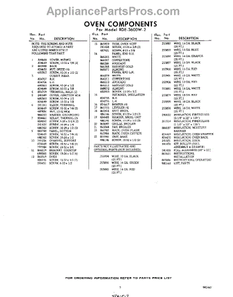 Parts for Whirlpool RDE3600W2: 07 - Lit / Optional Parts