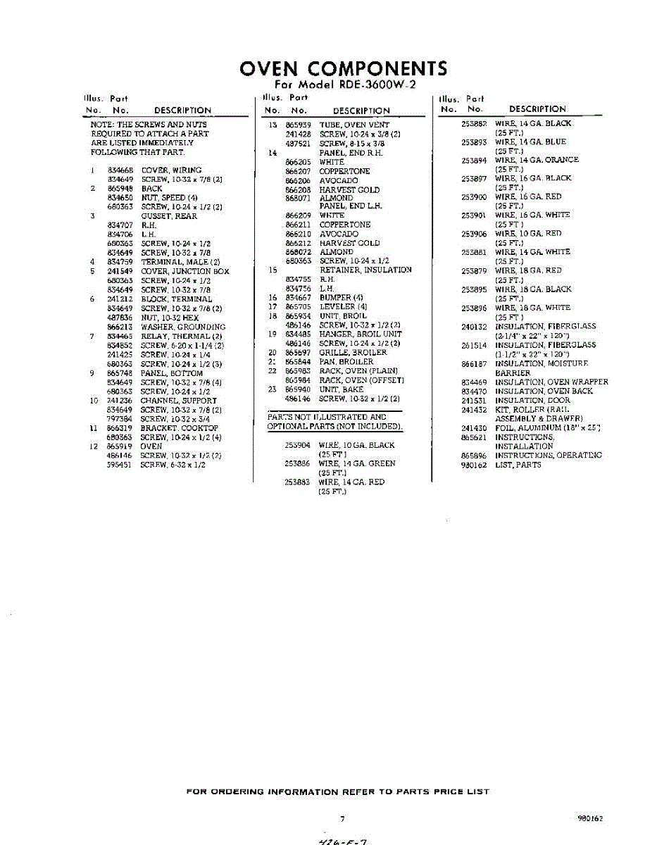 Parts for RDE3600W2