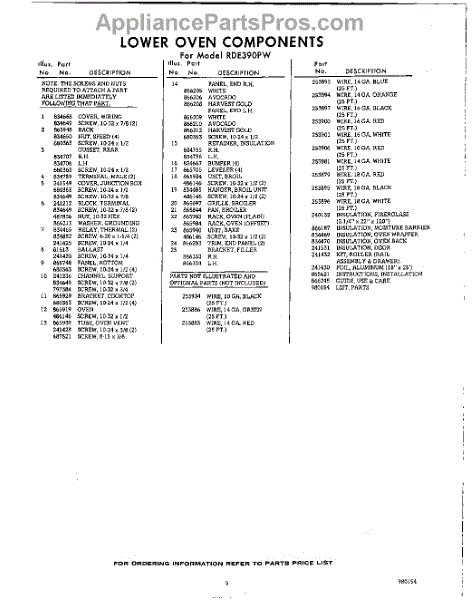 Parts for Whirlpool RDE390PW: 05 - Lit / Optional Parts
