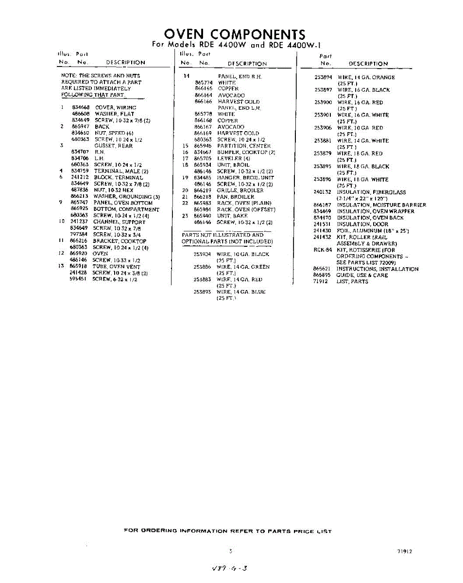 Parts for RDE4400W1