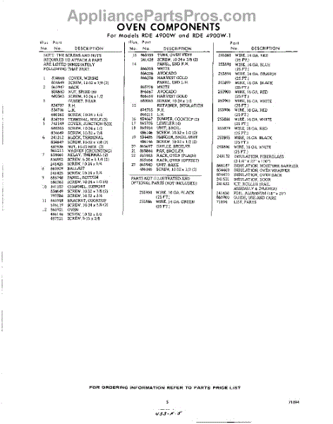 Parts for Whirlpool RDE4900W: 05 - Lit / Optional Parts
