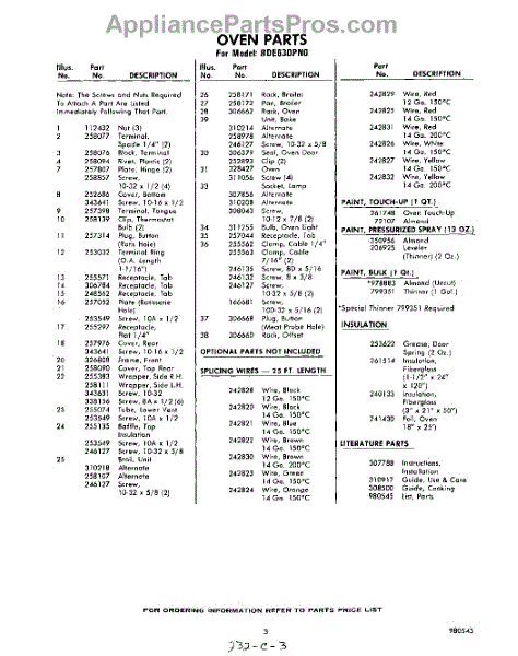 Parts for Whirlpool RDE630PN0: 03 - Lit / Optional Parts