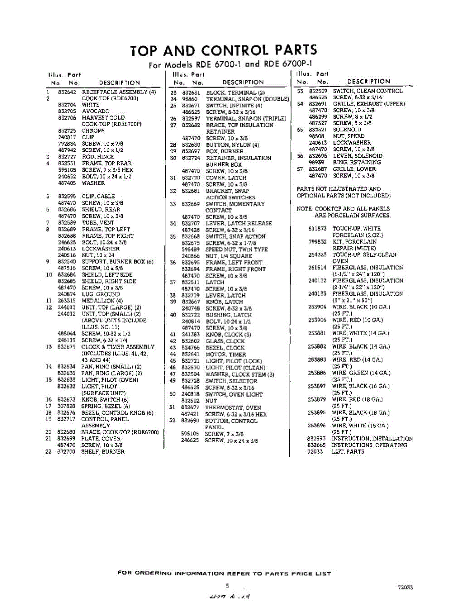 Parts for Whirlpool RDE6700W1: 05 - Lit / Optional Parts