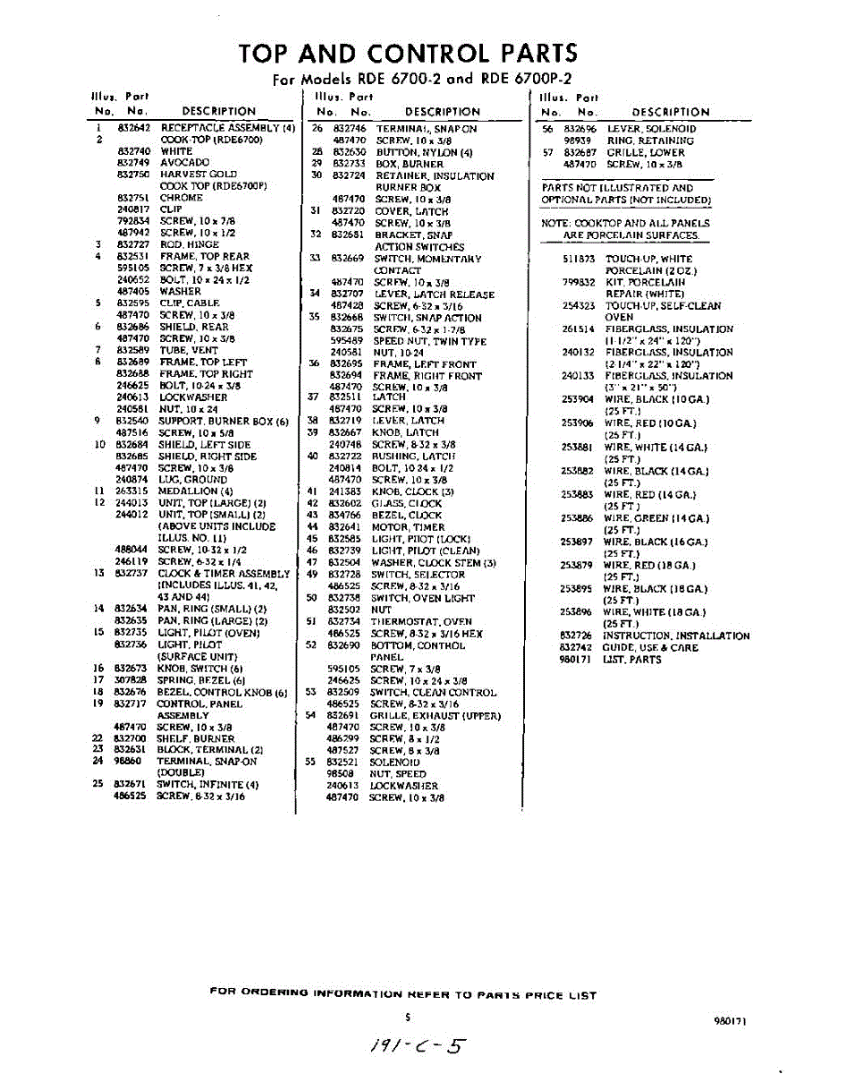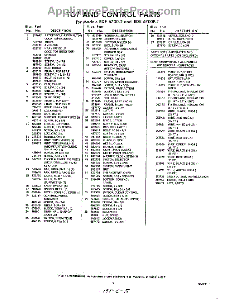 Parts for Whirlpool RDE6700W2: 05 - Lit / Optional Parts