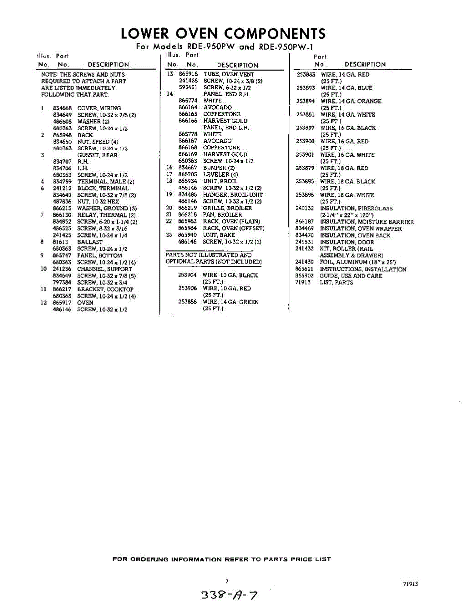 Parts for RDE950PW1