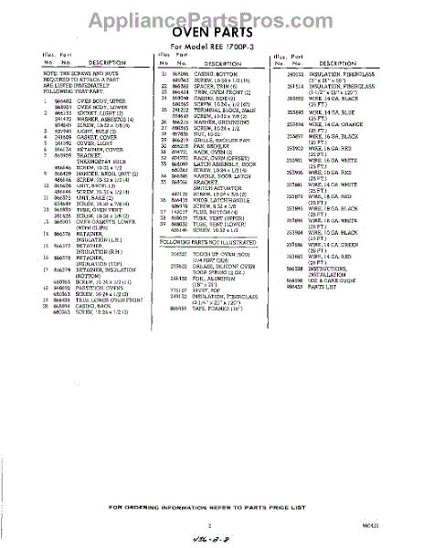 Parts for Whirlpool REE1700P3: 03 - Lit / Optional Parts