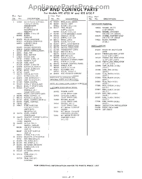 Parts for Whirlpool REE6700P: 07 - Lit / Optional Parts