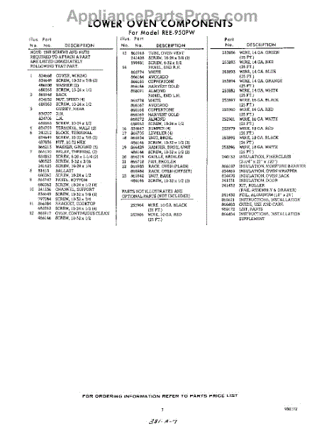 Parts for REE950PW