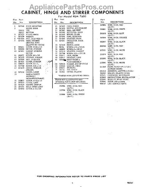 Parts for Whirlpool REM7600: 05 - Lit / Optional Parts
