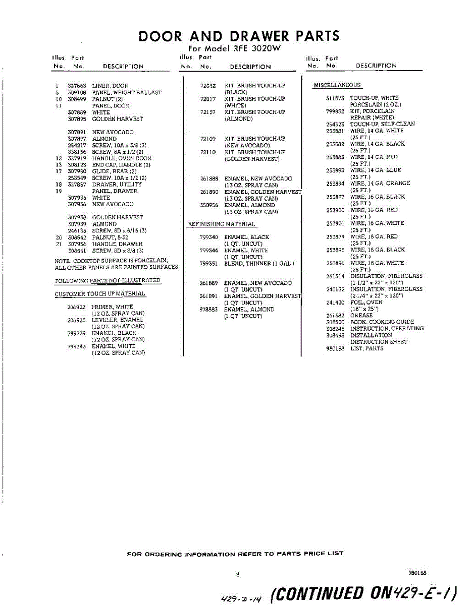 Parts for Whirlpool RFE3020W: 03 - Lit / Optional Parts