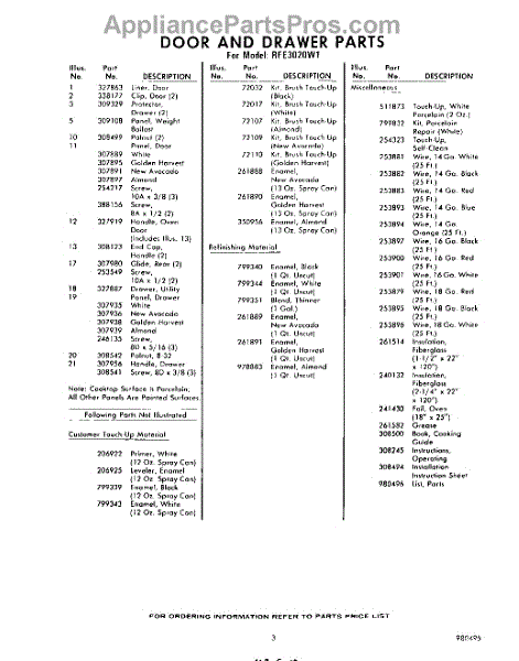 Parts for Whirlpool RFE3020W1: 03 - Lit / Optional Parts