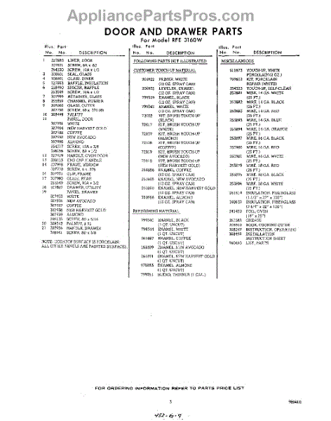 Parts for Whirlpool RFE3160W: 03 - Lit / Optional Parts
