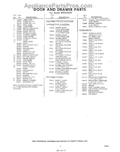 Parts for RFE3230W