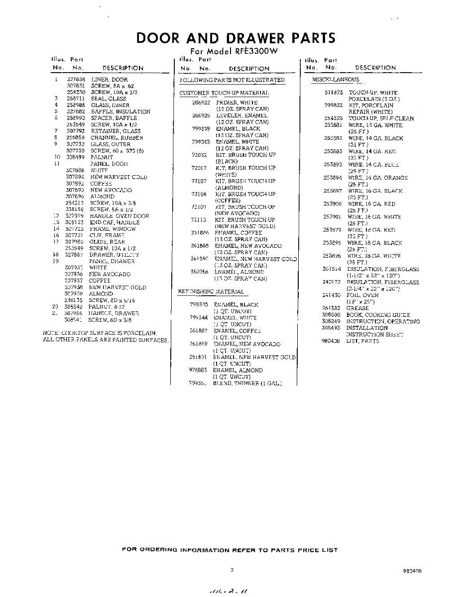 Parts for RFE3300W