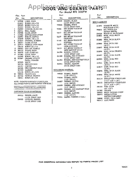 Parts for Whirlpool RFE330PW: 03 - Lit / Optional Parts