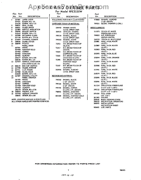 Parts for Whirlpool RFE3550W: 07 - Lit / Optional Parts