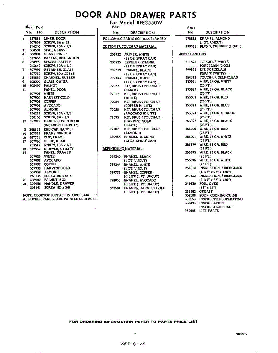 Parts for RFE3550W