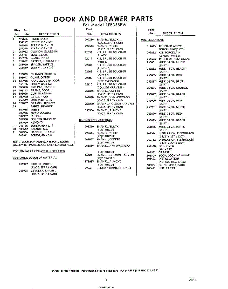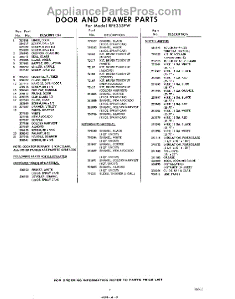 Parts for RFE355PW