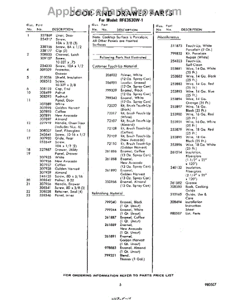 Parts for Whirlpool RFE3630W1: 05 - Lit / Optional Parts