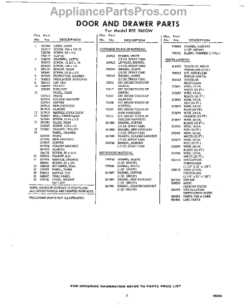 Parts for RFE36E0W