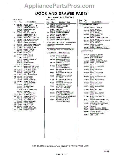 Parts for Whirlpool RFE3700W1: 03 - Lit / Optional Parts