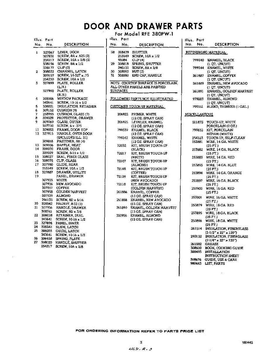 Parts for RFE380PW1