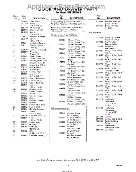 Parts for RFE390PW1