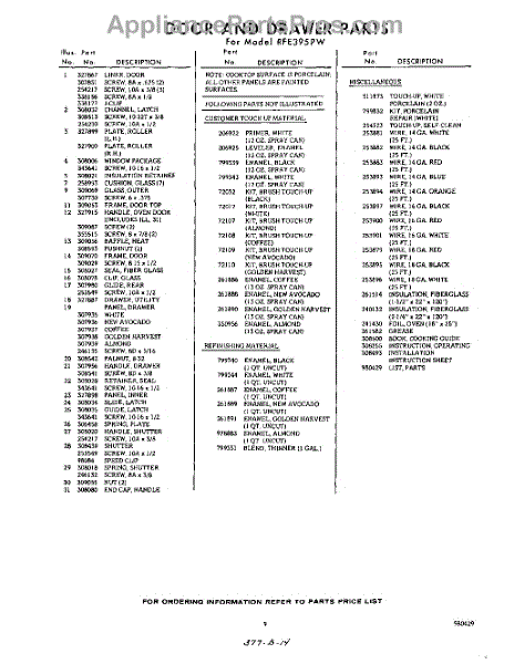 Parts for RFE395PW