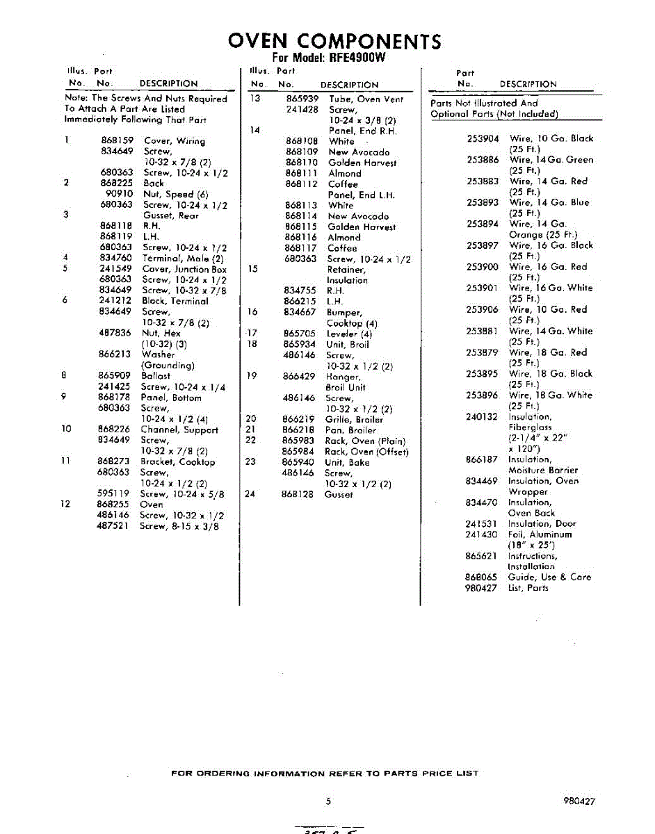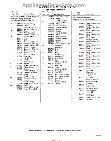 Parts for Whirlpool RFE4900W: 05 - Lit / Optional Parts
