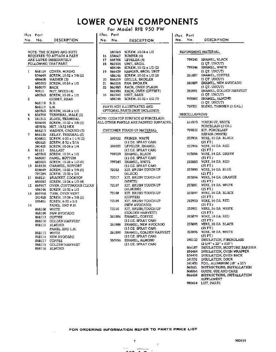 Parts for Whirlpool RFE950PW: 07 - Lit / Optional Parts