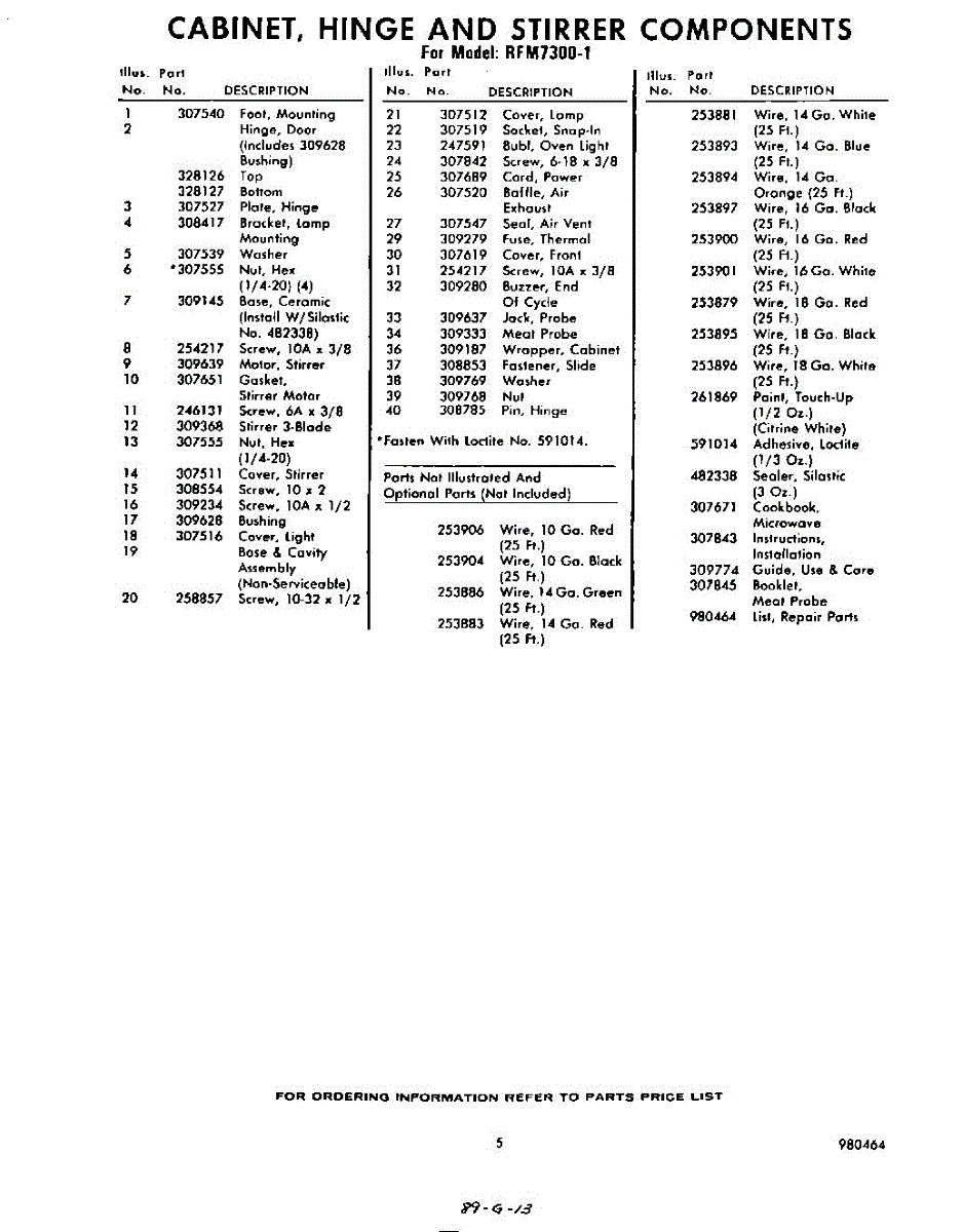 Parts for Whirlpool RFM73001: 05 - Lit / Optional Parts
