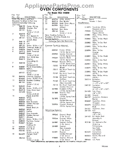 Parts for RGE4400W