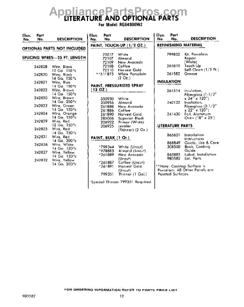 Parts for Whirlpool RGE4900W2: 12 - Lit / Optional Parts