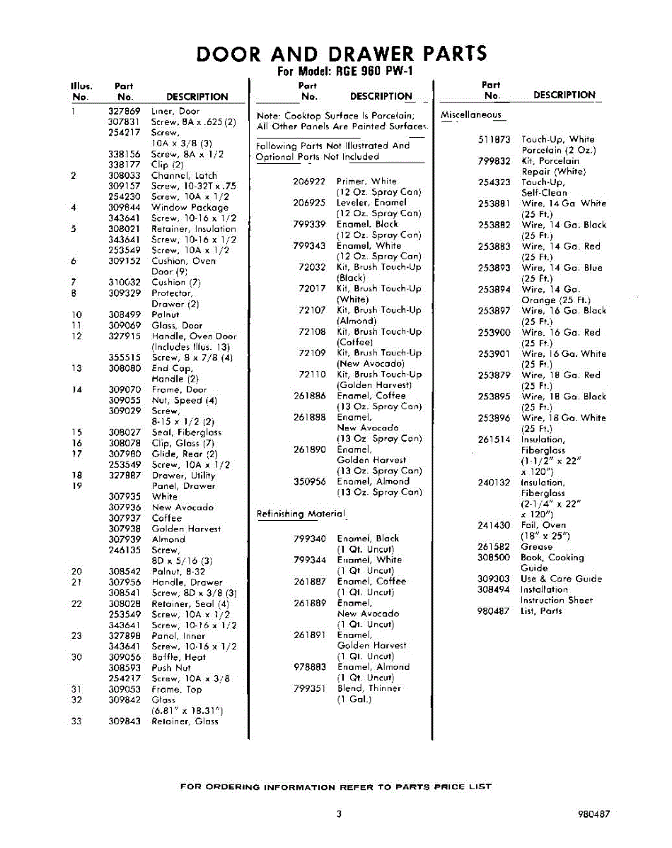 Parts for RGE960PW1