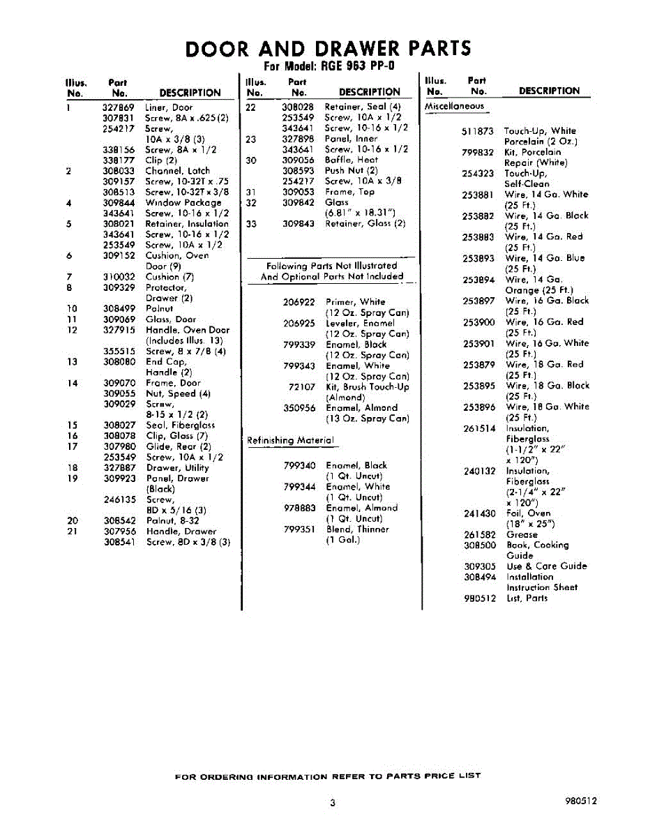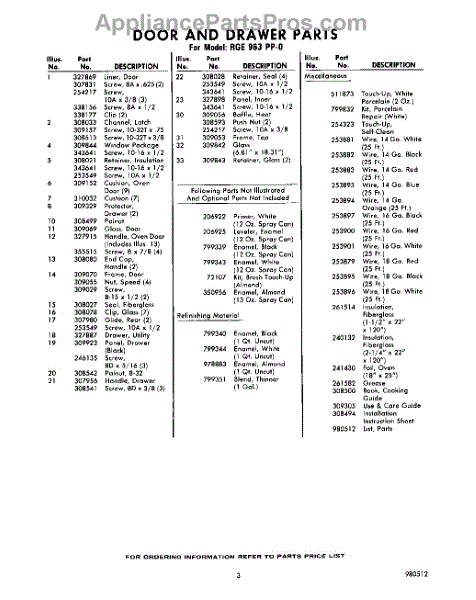 Parts for Whirlpool RGE963PP0: 03 - Lit / Optional Parts